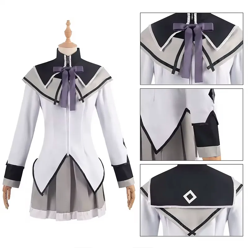 This Akemi Homura cosplay costume includes every detail, from the sailor collar to the elegant purple ribbon. The set features a skirt, stockings, and a headband for a complete look. Crafted from comfortable, durable fabric, it ensures a perfect fit for long hours at conventions or photoshoots. Available in various sizes to suit your style.