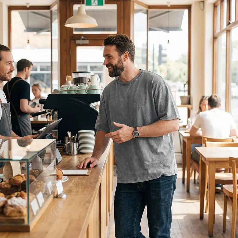 Super comfy tee, love the loose fit. Feels soft against the skin and keeps me cool on warm days. Looks good with joggers or jeans.