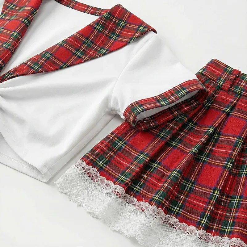 Sexy Cosplay Schoolgirl Costume Plaid Outfit Lingerie