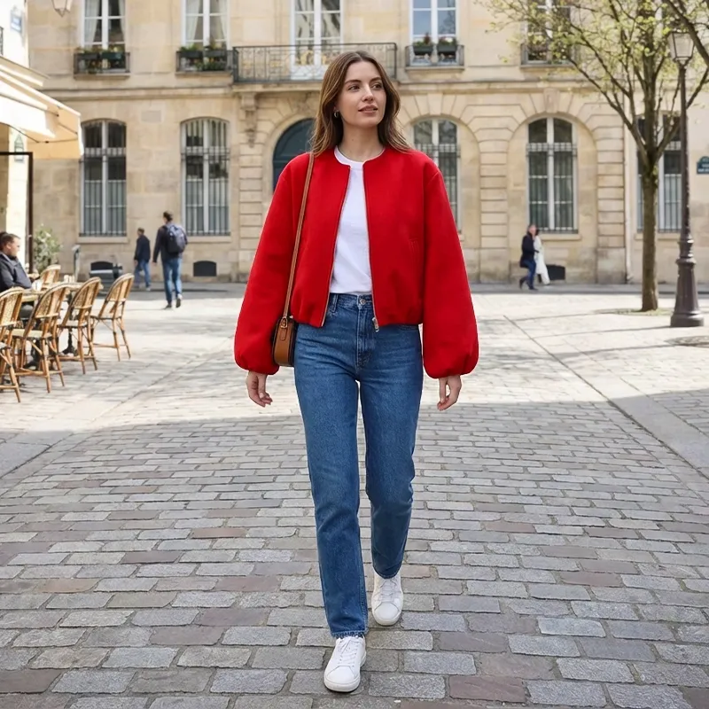 Designed to complement your look, this piece combines chic shape with functionality. The cropped cut enhances your silhouette and adds contemporary appeal. Durable stitching ensures long-lasting wear without compromising flexibility. Zipped pockets provide a safe place for your valuables and help keep your hands warm. Pair this jacket effortlessly with denim, skirts, or tailored trousers for instant style.
