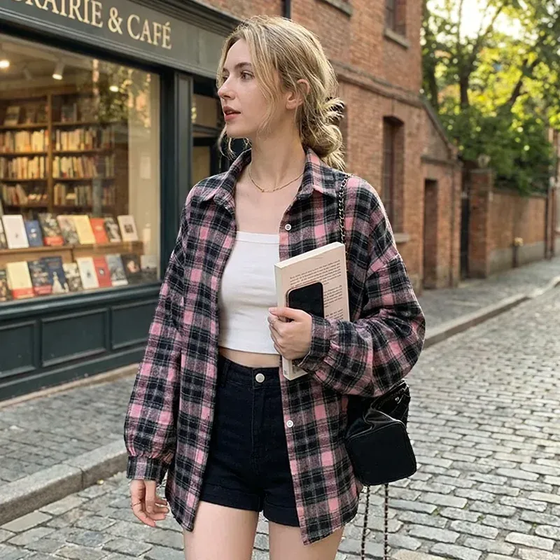 This shirt combines comfort with a contemporary design, making it perfect for casual outings. The plaid pattern adds a touch of timeless charm, while the relaxed fit ensures ease throughout the day. This oversized T-shirt provides a laid-back vibe, making it ideal for layering. Pair it with jeans or leggings for an effortlessly cool ensemble. Whether you're heading to brunch or running errands, this shirt is the go-to choice.