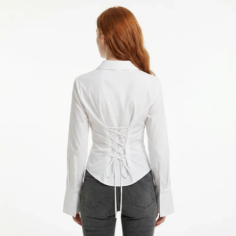 This shirt combines functionality with fashion, featuring a tie-back closure for a secure fit. The fabric drapes beautifully, offering a flattering look for all body types. It complements various outfits, making it easy to pair with jeans, skirts, or trousers. Ideal for both professional settings and casual outings, it transitions seamlessly between occasions. The blouse's design ensures comfort without compromising on style.