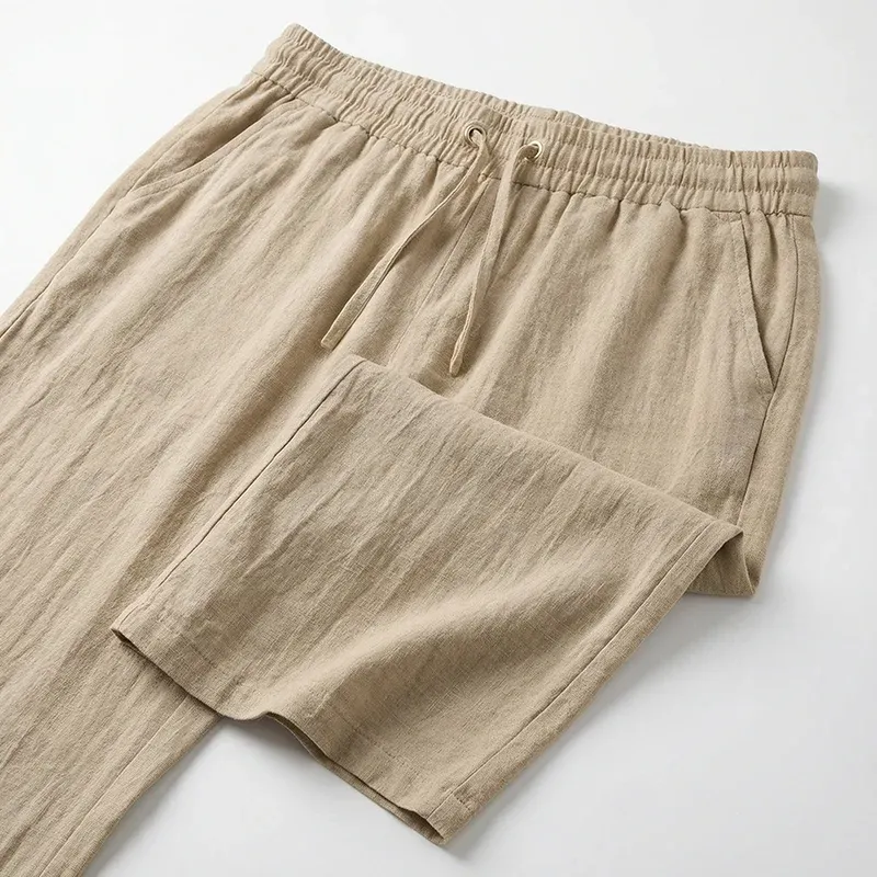 Breathable linen cotton keeps your legs comfy and sweat-free during warm days. Straight-leg design combines casual ease with a polished, refined appearance. It blends seamlessly with a wide range of accessories and footwear options. Soft fabric allows natural movement while maintaining neat drape and fit. Ideal for relaxed gatherings, walks, or coffee dates in the city.